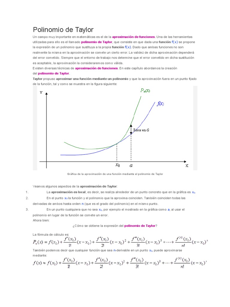 Polinomio De Taylor / Evaluando polinomio de Taylor para derivada - YouTube - El polinomio de taylor el polinomio de taylor nace del interés que tenían los matemáticos en aproximar una función compleja mediante una función muy simple, en concreto, un polinomio.